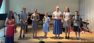 Am Mittwoch, 25. Juni 2025, fand in der Musikschule auch in diesem Schuljahr wieder ein Vortragsabend mit Solistinnen und Solisten aus verschiedenen Fachbereichen statt. Schülerinnen und Schüler aller Altersgruppen aus den Fachbereichen Trompete, Saxophon, Klarinette, Blockflöte, Gesang und Klavier präsentierten Solostücke aus den unterschiedlichsten Musik-Epochen. Begleitet wurden alle am Klavier souverän und professionell von der Korrepetitorin Burcin Sel-Mumcuoglu.