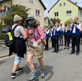 Dieses Jahr vertraten die Wandergruppe und die Theaterwerkstatt das Mehrgenerationenhaus beim Kerwa-Umzug und hatten sichtlich Spaß dabei.