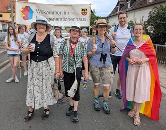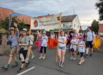Am 5. Juli wurde endlich wieder im Kerwa-Umzug fröhlich getanzt und mitgelaufen! Mit viel Spaß und Tanzfreude zu fetzigen Zumba Rhythmen, nahm das Mehrgenerationenhaus als bunte Fußgruppe wieder beim Umzug teil und sorgte für tolle Stimmung, allen voran die Zumba-Kids und die lustigen Wandervögel. Ein frischer, regenreicher Wind durchnässte die Gruppe auf der Lindenallee und es brauchte viel Kraft, unsere MGH Plane fest zu halten, was den Spaß noch steigerte. Diese Erfrischung wurde sehr begrüßt, denke man insbesondere an die vergangenen Jahre, in denen die Hitze oft besonderer Anstrengung bedurfte. Es war wieder einmal ein unvergessliches MGH Erlebnis und wir freuen uns jetzt schon auf unsere Teilnahme in 2025. Dankeschön an alle Teilnehmenden, die mit ihrem Gaudi nicht nur den Kerwa-Umzug bereicherten sondern auch das MGH repräsentiert haben!