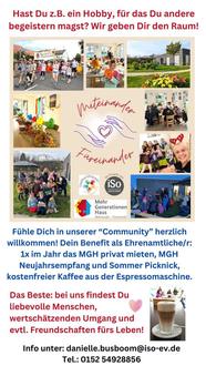 Die meisten Ehrenamtlichen sind schon seit Jahren im MGH engagiert. Es entstehen auch immer wieder neue Freundschaften, die sich bei Begegnungen (sowohl beim Sommer Picknick als auch beim Neujahrsempfang) vertiefen. Das zu erleben erfreut mich natürlich ganz besonders!