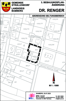 Der Gemeinderat von Strullendorf hat in seiner Sitzung vom 25.07.2023 beschlossen, den rechtsverbindlichen Bebauungsplan "Dr. Renger" zum 3. Mal zu ändern.