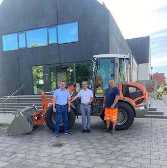 Im Foto von rechts: Bauhofleiter Jörg Spörlein, 1. Bürgermeister Wolfgang Desel und André Sauerteig von Becker Baumaschinen GmbH