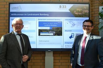 Die Einführung dieser digitalen Wegweiser ist ein weiterer Schritt in Richtung moderner und serviceorientierter Verwaltung. „Mit den neuen digitalen Wegweisern möchten wir unseren Gästen den Aufenthalt im Landratsamt so angenehm wie möglich gestalten und gleichzeitig aktuelle Informationen aus dem Landkreis zur Verfügung stellen“, betont Landrat Johann Kalb. „Die Bildschirme sind ein weiterer Schritt unserer Digitalisierungsstrategie, mit der wir den Service für die Bürgerinnen und Bürger kontinuierlich verbessern möchten.“ Im Mai verlieh der Bayerische Staatsminister für Digitales, Dr. Fabian Mehring, dem Landratsamt Bamberg die Auszeichnung als „Digitales Amt“. Voraussetzung für diese Anerkennung sind mindestens 50 Möglichkeiten, Verwaltungsleistungen online abwickeln zu können. Beim Landratsamt Bamberg sind es aktuell mehr als sechs Dutzend. Die neuen Wegweiser ergänzen dieses bestehende digitale Angebot.