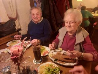 Am vergangenen Freitag feierte unsere Hildegard ihren Geburtstag nach. Dieses Jahr gibt es für alle Geburtstagskinder viele Vitamine und auch einen Gutschein zum Einkaufen. Darüber freuen sich die Senioren sehr. Dann wird Kaffee getrunken und Hildegard hat uns einen leckeren Kuchen mitgebracht. Gemeinsam wird dann aufgeräumt und gespült damit wir um 16 Uhr startklar sind um nach Roßdorf zu fahren. Im Gasthaus Sauer erwartet uns Karpfenfilet und andere leckere Speisen. So ein kulinarischer Ausflug in der Gemeinschaft ist eine willkommene Abwechslung für die Senioren. Es hat allen gefallen und wir haben gemeinsam einen schönen Nachmittag/Abend erlebt. Wir werden dies mit Sicherheit mal wiederholen. Im Sommer geht es dann auch wieder in den Biergarten.