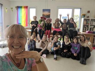 In den letzten Wochen tun sie das nicht nur tänzerisch sondern auch darstellerisch mit farbenfrohen Verkleidungen „Jede Woche ein anderes Motto“. Was für ein Gaudi!