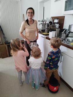 Der Sommer hat sich verabschiedet, der Garten wird kaum mehr genutzt, nun kommt die gemütliche Jahreszeit im Offenen Treff Familien-Café, der für alle Generationen angeboten wird. Ob bei einer großen Schüssel Popcorn, selbstgebackenen Waffeln, beim Hütte-Bauen oder Rutschpartien auf unserer Holzrutsche, hier finden die Kinder immer andere Quellen der Freude und Bewegung vor. Unsere neue Holzwippe hat gleich an Beliebtheit gewonnen. Zwei Rollfahrzeuge und zwei Hüpfpferdchen sowie auch Kleinspielzeuge wie Lego oder Bilderbücher, regen die Phantasie an. Aus unserer Sachbuch-Abteilung können Bücher zu bestimmten Themen (z.B. Kindererziehung, -ernährung, gesunde Lebensführung, Frauenthemen etc.) ausgeliehen werden, ebenso Kinderbilderbücher. Demnächst laden wir zu herbstlicher Eltern-Kind-Bastelei und zum Kürbisschnitzen ein und freuen uns auch schon auf die Vorweihnachtszeit.