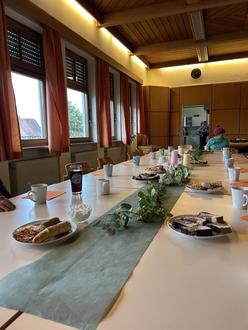 Vorher gab es wieder Kaffee und Kuchen und auch leckere herzhafte Teile. Am Ende beschließen wir den Gruppennachmittag mit unserem gemeinsamen Lied: möge die Straße uns zusammenführen und mit einem gemeinsamen Gebet.