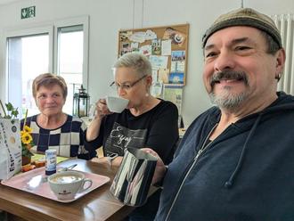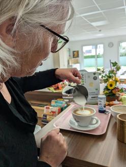 Einmal jährlich treffen sich interessierte Ehrenamtliche zum gemütlichen Erfahrungsaustausch über die Espresso-Maschine im MGH bzw. zur Einführung, wer erstmals dabei ist. Um den feinsten Milchschaum zu erzielen, wird zunächst mit Wasser und Spülmittel geübt. Wenn alle wieder „auf dem neusten / gleichen Stand“ sind, was die Handhabung, Reinigung und Ideen zur Optimierung der Kaffee-Zubereitung betrifft, genießen sie ihren leckeren Cappuccino zu selbstgebackenen Kuchen.