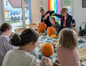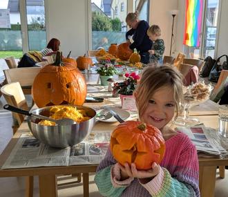 Auch in diesem Jahr lud der Offene Treff zu einem Eltern-Kind-Kürbisschnitzen ein und die Ergebnisse erfüllten die Kinder mit Freude und Stolz, die Fotos sprechen für sich. Wir dürfen gespannt sein, wie diese Kürbisse zu Halloween leuchten werden - was für ein schöner Einstieg in diese dunkle Jahreszeit!