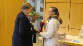 Hoher Besuch aus dem MGH/ISO hat sich außerdem bei uns eingefunden. Danielle Busboom kam vorbei, um mir nachträglich zum Geburtstag zu gratulieren. Mit einem schönen Blumengesteck und einer kleinen Überraschung gratulierte sie mir herzlich. Vielen Dank Danielle. Natürlich hat auch Johann wieder leckeren Kuchen für uns gebacken. Und mit ganz lieben Gedanken waren wir bei unserer Lia, die zur Zeit nicht da sein kann, denn sie hatte auch Geburtstag. Aber der wird natürlich auch nachgefeiert.