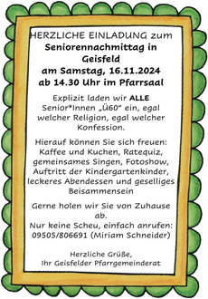 | 14.30 | Seniorennachmittag im Pfarrsaal |