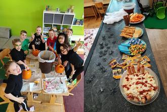 Wöchentliche Angebote wie Yoga & Co., Lesegruppen, Yu-Gi-Oh, Fußballtraining, Tanzen, Basteln, Chor und Projekte für das Wir-Gefühl konnten nun endlich beginnen. Nicht nur das. Die Woche vor den ersten Ferien stand ganz unter dem Motto: Halloween. Selbstgebastelte Dekoration, ein schaurig dekoriertes Buffet und gruselige Kostüme durften an der Halloweenparty nicht fehlen. Es wurde zusammen gefeiert, gespielt, getanzt und gelacht. Zwischen Spielen wie Mord in der Disco und Spinnennetz wurde am Grusel-Buffet wieder kräftig Energie getankt.