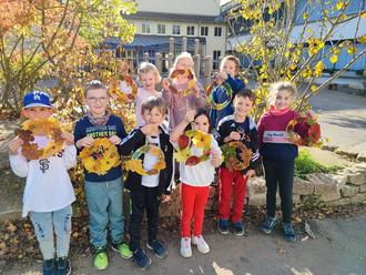 Am Mittwoch bastelten wir aus unseren gesammelten Naturmaterialien einen Herbstkranz. Dabei durften die Kinder ihrer Kreativität freien Lauf lassen. Ein Besuch auf dem Spielplatz rundete den Tag ab.