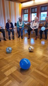 Na, da war doch mal Bewegung im Spiel. Im wahrsten Sinne des Wortes. Spiel, Spaß und das verbunden mit Bewegung. Bälle groß und klein, Luftballon und Reifen – all das brachte Farbe und Freude in die Seniorengruppe am vergangenen Freitag. Geschicklichkeit war ebenso wichtig, wie die Koordination. So haben wir viele Sinne angeregt und aktiviert. Natürlich kamen auch die Unterhaltung und der Genuss auf seine Kosten. Leckere Hörnchen mit Kaffee runden den Nachmittag ab. Am nächsten Freitag feiern wir gemeinsam in ruhiger Atmosphäre den 1. Advent.