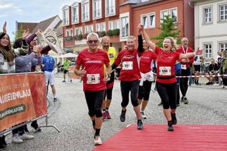 Freude am Sport und an der Geselligkeit haben die Teilnehmenden am Brauereienlauf wie hier 2025 in Memmelsdorf beim Zieleinlauf.