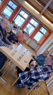 Freitag, 14 Uhr. Wir treffen uns wieder im Pfarrsaal. Am vergangenen Freitag haben wir gemeinsam an verschiedenen Tischen zusammengespielt. Wieder einmal standen zur Freude aller Gesellschaftsspiele am Tisch auf dem Programm. Da wurde gewürfelt, gekniffelt bei Rummy Cup, gezockt bei Schafkopf und die Karten gelegt bei 11er raus. Und alle hatten Freude und Spaß und die Unterhaltung kommt auch nicht zu kurz.