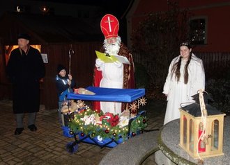 Mit diesem alten Gedicht begrüßte der Bischof Nikolaus, wie seit Jahrzehnten, in Roßdorf viele Kinder, die ihn mit ihren Mamas, Papas, Omas und Opas am Dorfplatz erwarteten. Einen voll bepackten Wagen zogen sein Engel Laura mit seinem Helfer durch die Dorfstraße. Helles Glockengebimmel kündete sein Kommen an. Generationen von Kindern hat Sankt Nikolaus bereits gelobt und getadelt. Es gab auch heuer viel Lob und wenig Klagen. An einige Versprechen aus dem Vorjahr erinnerte der Nikolaus. Natürlich überreichte der Engel jedem eine Gabe. Der liebe Knecht Ruprecht „Lumbi“ hatte keinen Sack und keine Rute, sondern einen kleinen Bischof Nikolaus aus Schokolade für jeden. Das Nikolauslied aller war ein besonderer Dank, als sich der Nikolaus verabschiedete: