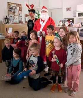 Der von den Kindern selbst geschmückte Tannenbaum erhellte den Raum. Mit dem leuchtenden „Adventsfenster Nr. 5“ und dem hübsch dekorierten Tisch, tauchten alle Gäste Groß und Klein in die vorweihnachtliche Atmosphäre ein. Es duftete nach Tannennadeln, Glühwein, Kinderpunsch, Weihnachtsgebäck und selbstgebackenem Kuchen. Die Spannung „Warten auf den Nikolaus“ hatte seinen Höhepunkt, als alle das Läuten des Glöckchens vernahmen und sich die Türe öffnete und der Nikolaus mit seinem großen, schweren Sack den weihnachtlichen Raum betrat. Dieses Mal hatte er als Überraschung sein Rentier mitgebracht. Die Kinder wurden nach der Reihe aufgerufen und nahmen ihr Päckchen, teils hüpfend vor Freude, teils aber auch etwas verängstigt, entgegen. Das MGH bedankt sich ganz herzlich bei Nikolaus Mike und seinem Rentier Abbas und natürlich allen, die mitgeholfen haben, sei es mit einer Kuchenspende oder beim Lagerfeuer, einschließlich meine lieben Betreuungskräften an dem Tag, Maria und Priyanga und Nadine, herzliches Dankeschön!