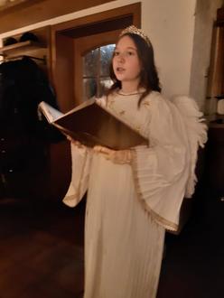Und zur Überraschung aller Teilnehmer kam auch das Bamberger Christkind zu uns. Mit Geschichten und Gedichten hat es uns erfreut und gemeinsam haben wir für das Christkind gesungen. Bei einem leckeren Abendessen und in gemütlicher Runde haben wir nicht nur den Abend, sondern auch das Bus-Fahr-Jahr abgeschlossen.