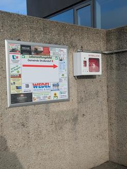 Am Rathaus der Gemeinde Strullendorf, Forchheimer Straße 32, wurde eine Lebensrettungstafel mit Defibrillator (AED) aufgestellt.