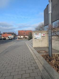 Der Defibrillator ist gut sichtbar angebracht und öffentlich zugänglich. Er befindet sich an der Außenseite des Rathauses, von der Forchheimer Straße aus Richtung Hirschaid kommend unmittelbar rechts, noch vor dem offiziellen Eingang der Gemeinde (siehe Foto).