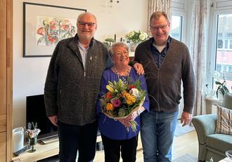 Die Glückwünsche zum 80. Geburtstag überbrachten Pfarrer i.R. Eckhard Mattke und 2. Bürgermeister Stefan Zahner. Frau Kreft stammt ursprünglich aus Halle/Westfalen und kam vor etlichen Jahren nach Hirschaid und lebt jetzt im betreuten Wohnen der AWO Strullendorf. Sie hat sich sehr gut eingelebt und nimmt regelmäßig und sehr gerne an den Veranstaltungen der aktiven Senioren Strullendorf teil.