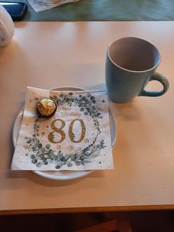 Wenn wir dann aber einen großartigen runden Geburtstag feiern, dann ist das nochmal was Besonderes. Und so auch am vergangenen Freitag. Unsere Brigitte feierte ihren 80.ten Geburtstag gemeinsam mit uns. Und zusammen mit Ihrer Tochter Martina hat sie alles schön gestaltet und dekoriert.
