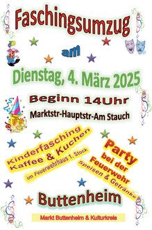 Auf zahlreiche Zugteilnehmer und Zuschauer freuen sich der Markt Buttenheim und Ihr Kulturkreis.
