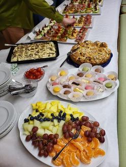 Nach einer wertschätzenden Ansprache durch Herrn Bürgermeister Desel und Herrn Gensner, Geschäftsführer von iSo-Innovative Sozialarbeit e.V. (unserem sozialen Träger), erlebten alle einen gemütlichen Abend und genossen das Schnittchen-Buffett mit Obst und Kuchen bei stimmungsvoller Hintergrundmusik. Eine Power Point Präsentation mit zahlreichen Fotos der Ereignisse und Höhepunkte aus 2024 regte an, das eigene Projekt vorzustellen und sich untereinander auszutauschen. Sich wieder einmal in vertrauter Runde zu treffen und gemeinsame Ideen für zukünftige MGH Projekte zu entwickeln, ließ sowohl die Herzlichkeit untereinander als auch die Verbundenheit zum MGH spürbar werden.