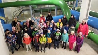 Am 6. März verbrachten die Klassen 4a und 4b der Grundschule Sulzberg einen interessanten Unterrichtsvormittag in Ortwang bei Burgberg. Die Viertklässler besuchten den Zweckverband FWOA und besichtigten dort die Betriebszentrale, ein Pumpenhäuschen und den 9-Millionen-Liter fassenden Hochbehälter Burgberg.