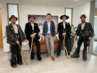 Vor kurzem besuchten eine ganze Gruppe von Wandergesellen auf der „Walz“ das Rathaus in Sulzberg. Sie stammten alle aus der Gesellenvereinigung „Freie Vogtländer Deutschlands“. Die vier Handwerker sind Dachdecker und Zimmerer und waren auf dem Weg nach Füssen, um einen Gesellen nach vollendeter „Walz“ nach Hause zu begleiten. Alle stammen aus Deutschland und sind ganz unterschiedlich lange unterwegs (ein bis drei Jahre).