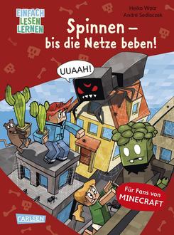 Für Fans von dem Computerspiel Minecraft haben wir zwei neue Erstlesebücher in der Bücherei. „Der Schatz im Labyrinth“ und „Spinnen - bis die Netze beben!“. (Cover: Carlsen)