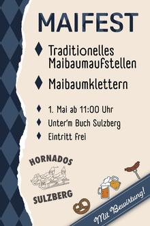 Original von Hand wird am 01. Mai 2025 in Unter´m Buch der Maibaum durch die Hornados Sulzberg aufgestellt. Den Start um 12 Uhr wird durch die Böllerschützen vom Schützenverein Sulzberg angeschossen. Für das