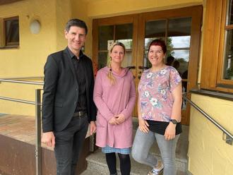 v.l.n.r.: 1. Bürgermeister Gerhard Frey, Manuela Mundi (Kinderpflegerin), Michaela Ben Brahim-Gabriel (Kinderpflegerin).