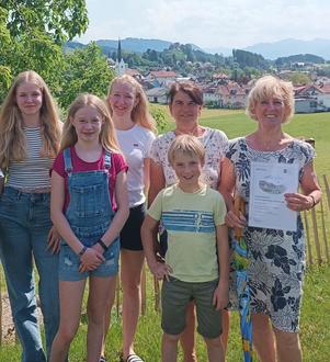 Zum 10. Mal hat Renate Albrecht mit Lina, Nele, Mara und Samuel ihren Urlaub in Sulzberg verbracht. Dies wurde nun Anfang Juni bei der Familie Barensteiner bei Kaffee und Erdbeerkuchen gefeiert. Die Marktverwaltung Sulzberg bedankte sich mit einem Präsent und einer Urkunde und wünscht der Familie alles Gute und weiterhin schöne Aufenthalte in Sulzberg!