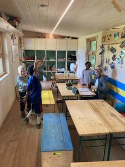 Seit ein paar Wochen besucht die Grundschullehrerin Frau Weigelt die Vorschulkinder im Waldkindergarten.
