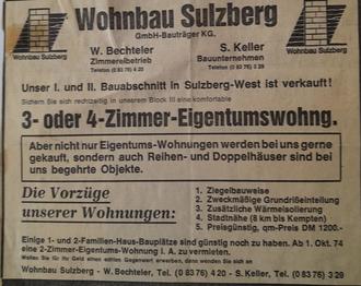 Erinnerungen von Josef Feneberg, damals Mitarbeiter der „Fa. Wohnbau Sulzberg“
