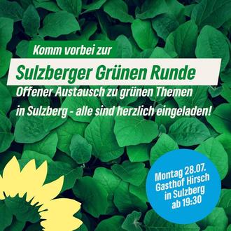 Die Grüne Runde bietet einen offenen Raum für Ideen, Anregungen und auch kritische Fragen. Lass uns gemeinsam überlegen, wie wir Sulzberg noch lebenswerter, nachhaltiger und zukunftsfähiger gestalten können.