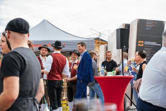 13 Familien mit insgesamt 25 Kindern finden bald ihr neues Zuhause im neuen Baugebiet in Sulzberg - Öschle. Die BSG-Allgäu hat gemeinsam mit der Marktgemeinde Sulzberg hier die Bebauung mit insgesamt 13 Reihenhäusern und Doppelhaushälften auf den Weg gebracht. Am 27 Juli konnten alle Familien gemeinsam mit Bürgermeister Gerhard Frey, Vertreterinnen und Vertretern der Marktgemeinde Sulzberg, den Mitarbeiterinnen und Mitarbeitern der BSG-Allgäu, den bauausführenden Handwerkern und Nachbarn des Baugebiets Richtfest feiern.