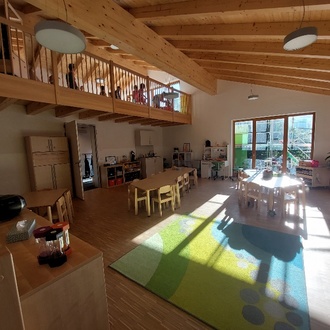 Kurz vor Ferienbeginn ist es nun soweit: Der neue Kindergartenraum kann von den Kindern ausprobiert werden! Ganz gespannt zogen alle Kinder durch den neuen Flur, schauten sich den neuen Waschraum an und erkundeten den hellen Gruppenraum mit der riesigen Empore. Die schönen Möbel, das viele Holz und die liebevoll ausgewählte Ausstattung machen den Raum zum richtigen Wohlfühlort, an dem in den nächsten Jahren viele Kinder Freude haben werden.
