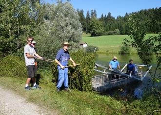 Auch dieses Jahr wurde mithilfe eines Spezialboots das Wasserkraut im kleinen Badesee in Untermoos reduziert, sodass dieser wieder einladender für Badegäste ist und um für eine Nährstoffreduzierung (auch im angrenzenden Rottachsee) zu sorgen. Das Wasserkraut selbst wird als wertvoller Kompost verwandt. Wir bedanken uns ganz herzlich bei Franz Hösle, der diese Aktion initiiert hat sowie bei den zahlreichen Helfern - u.a. vom Verkehrsverein Sulzberg, von der Flussmeisterstelle, dem Wasserwirtschaftsamt Kempten sowie von der Gemeinde Sulzberg und dem Bauhof.