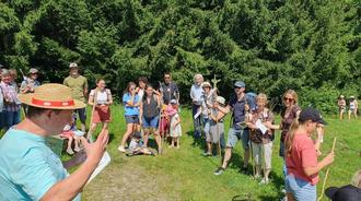 Bei strahlendem Sonnenschein trafen sich zahlreiche Familien am alten Sportplatz, um gemeinsam auf Wanderschaft zu gehen. Zum Thema "Der Herr ist mein Hirte" hatte sich das Kinderkirchen Team um Diakon Lechleiter verschiedene Stationen zum gleichnamigen Psalm überlegt. Zum Start gab es für jedes Kind einen "Stecken" (Dein Stock und dein Stab geben mir Halt), an der zweiten Station wurde mit Kuhschellen geläutet (Muss ich auch wandern, im nebligen Tal, du hörst mich), an der dritten Station konnten sich alle ausruhen (Du lässt mich ausruhen auf grünen Wiesen und führst mich zum Ruheplatz), bevor es auf den Anstieg zur Ruine ging. Oben an der letzten Station bekamen die Eltern die Gelegenheit ihre Kinder zu salben und es gab etwas zu trinken (Du salbst mein Haupt mit Öl und füllst meinen Becher mit Wasser).
