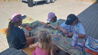 Nach vier Jahren Pause konnten wir endlich wieder das Oberallgäuer Spielmobil in Sulzberg begrüßen. Das Spielmobil hatte täglich von 9 - 12 und von 13.30 – 16.30 für Kinder von sechs bis zwölf Jahren geöffnet. Über fünfzig Mädchen und Jungs kamen die Woche über und erfreuten sich über ein kunterbuntes Programm aus Spielen, Sport und Bastelangeboten. Besonders beliebt waren die verschiedenen Fahrzeuge und am Nachmittag als willkommene Abkühlung die Wasserrutsche. Genauso gern bastelten die Kinder Helme, Steinschmuck und Figuren aus Ton und lernten das Strategiespiel „Kalaha“ neu kennen. Das Spielfieber verbreitete sich rasch und etliche Partien wurden gemeinsam gespielt. Am Freitagnachmittag waren auch die Eltern zum Abschlussfest eingeladen. Die Kinder zeigten stolz ihren einstudierten Tanz und ihre gebastelten Schätze. Beim Fingerfood Buffet ließen wir den Nachmittag noch schön zusammen ausklingen. Ein herzliches Dankeschön geht an den Kreisjugendring, an unsere Betreuerinnen sowie an den TSV, der uns das Vereinsheim mit zur Verfügung gestellt hat. Wir freuen uns schon jetzt auf den Spielmobil Besuch im nächsten Jahr.