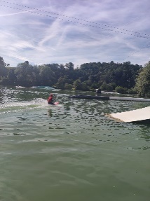 Am Dienstag, den 08. August ging es für die Sulzberger Kinder und Jugendlichen nach Blaichach zum Wasserski-Lift. Trotz des eher regnerischen Wetters in den vorangegangenen Tagen warfen sich die Teilnehmer in die Neopren-Anzüge, Schwimmwesten und Helme. Nach einer kurzen Einführung zu den Ski, den Wakeboards und dem Lift ging es auch schon los. Nacheinander schwangen sich alle auf ein oder zwei Bretter und wurden vom Lift über das Wasser gezogen. Was anfangs noch schwierig schien, lief nach ein paar Versuchen immer besser, bis immer mehr Teilnehmer/innen die komplette Runde über den See stehen blieben. Nach zwei Stunden traten alle wieder den Heimweg an.