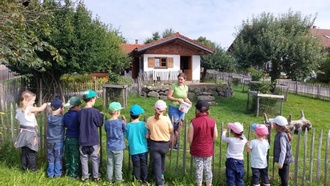 Einen tollen Vormittag durften die jüngeren Kinder ab fünf Jahren auf dem Erlebnisbauernhof Ettensperger verbringen. Bianca Ettensperger, ausgebildete Erlebnisbäuerin und gelernte Hauswirtschafterin, gab nicht nur einen tollen Einblick in das Hofleben, sondern vermittelte auch sehr kindgerecht, was eine artgerechte Tierhaltung und hochwertige Lebensmittelherstellung ausmacht. Wir durften die Kühe füttern und die Kälbchen streicheln. Die zahmen Hennen pickten uns sogar das Futter von den Füßen. Es wurde fleißig beim Ausmisten der Hühner und Hasen geholfen, aber auch ausgiebig auf dem tollen Spielplatz getobt. So viele Erlebnisse machten hungrig – die elf Mädchen und Jungen durften ihre eigene Butter schütteln. Wir waren uns alle einig, dass dieses Butterbrot besonders gut schmeckte und wir schöne Stunden verbringen durften. Ein herzliches Dankeschön dafür an Bianca!