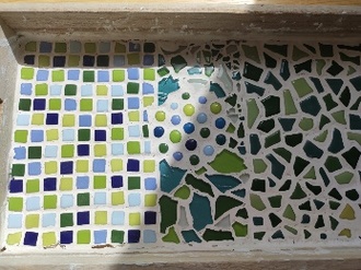 Am Donnerstag, den 24. August ging mit dem Basteln der Mosaiktabletts weiter. Sechs Kinder fanden sich im Jugendtreff zusammen und starteten nach einer kurzen Einführung mit ihren einzigartigen Tabletts. Sie bestrichen diese mit Mosaik-Zement und klebten die quadratischen und runden Steine oder Bruchstücke auf. Es entstanden bildschöne Kunstwerke in den unterschiedlichsten Farben. Im Anschluss wurden die Lücken mit Mosaik-Zement aufgefüllt. Wenn die Tabletts getrocknet sind, werden sie mit einem Fugenfinish bestrichen, um Verschmutzungen vorzubeugen.