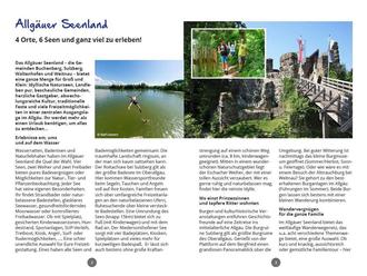 Neben zahlreichen Online- und Print-Anzeigen in diesem Jahr hat das Allgäuer Seenland einen vierseitigen Auftritt im Familienreiseführer Allgäu/Bodensee (Reise-Idee Verlag, Kempten) gebucht. Er wird für vier Jahre aufgelegt mit einer geplanten Gesamtdruckauflage von 30.000 Exemplaren. Der Vertrieb erfolgt in Deutschland, Österreich und der Schweiz sowie als kostenfreies E-Book.