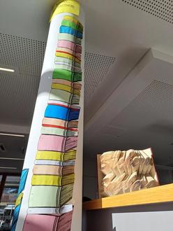 Außerdem haben wir währen der Burgentage die Büchertürme gemessen, die unsere Leserinnen und Leser, ob groß oder klein, zurückgebracht haben. Die Kinder kamen so auf einen Turm der Höhe 4 m 63 cm und die Erwachsenen sogar auf einen 5 m 91 cm hohen Turm! Schauen wir uns die Statistik aber genauer an, haben die Erwachsenen in dem Zeitraum 177 Bücher gelesen, die Kinder aber 363 Bücher!