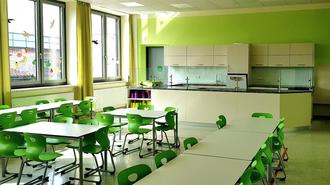 Mittags steht gemeinsames Essen in unserer schönen Mensa auf dem Programm, bei dem die Kinder entweder eine selbst mitgebrachte Brotzeit oder das vom Arbeiter-Samariter-Bund gelieferte warme Mittagessen verzehren können.