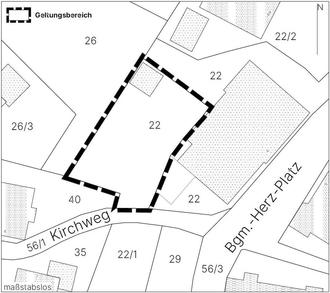 Das Plangebiet liegt zentral im Ortsteil "Moosbach" des Marktes Sulzberg, nördlich des "Kirchwegs", und umfasst das Grundstück Fl.-Nr. 22 (Teilfläche). Der räumliche Geltungsbereich ist im abgebildeten Lageplan dargestellt.